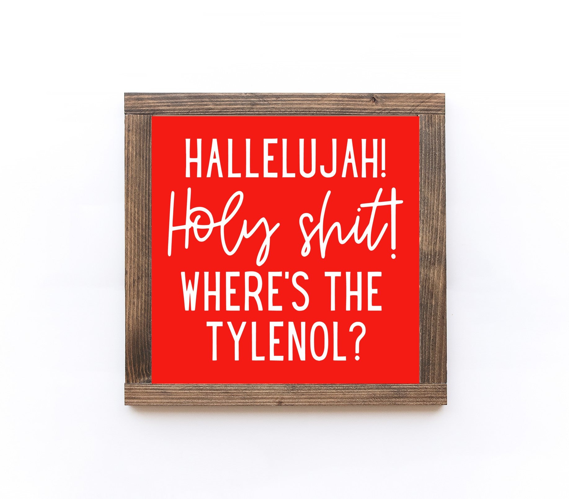 Hallelujah! Holy Shit! Where's the Tylenol? Wood Sign